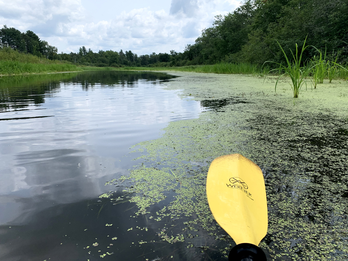 There was nothing politically or biologically slimy about the river. Wide, slow, marshy, with puffy clouds reflected in the wide water, the Apple here is a sit-on-topper’s dream. In fact, I soon caught up with four women drifting lazily along on their sit-on-tops, lollygagging on their particular bite of the Apple.