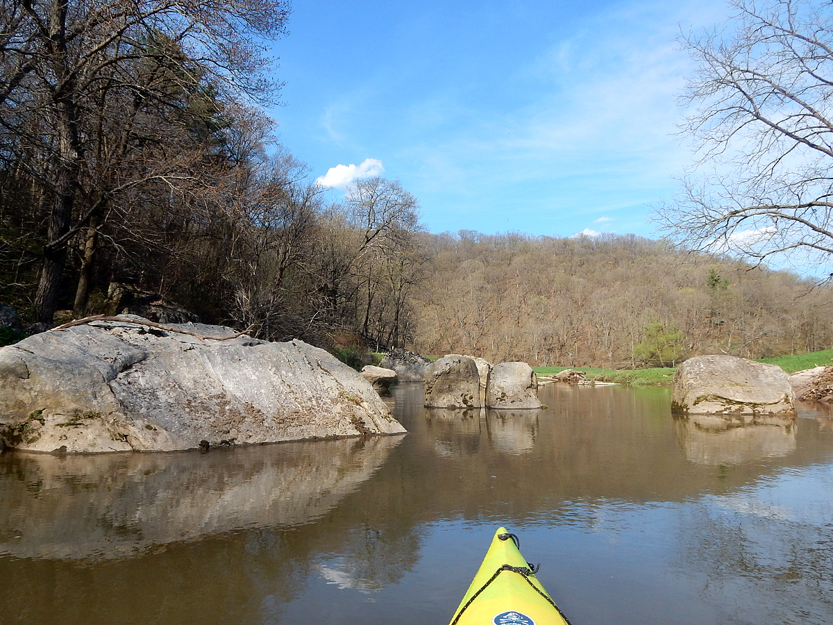 We’d do this trip again in a heartbeat – whenever the water’s up. It truly is a stunning experience. Ideally, hitting it right after a couple inches of rain would ensure a rocking paddle with springs just pouring out of the hills. We’re very grateful for having paddled this so early in spring, before the leafy camouflage of trees hid some of the boulder-laden bluffs. This trip truly lends itself to paddling either in early spring or late fall, to better take in the little details hidden in the hills.