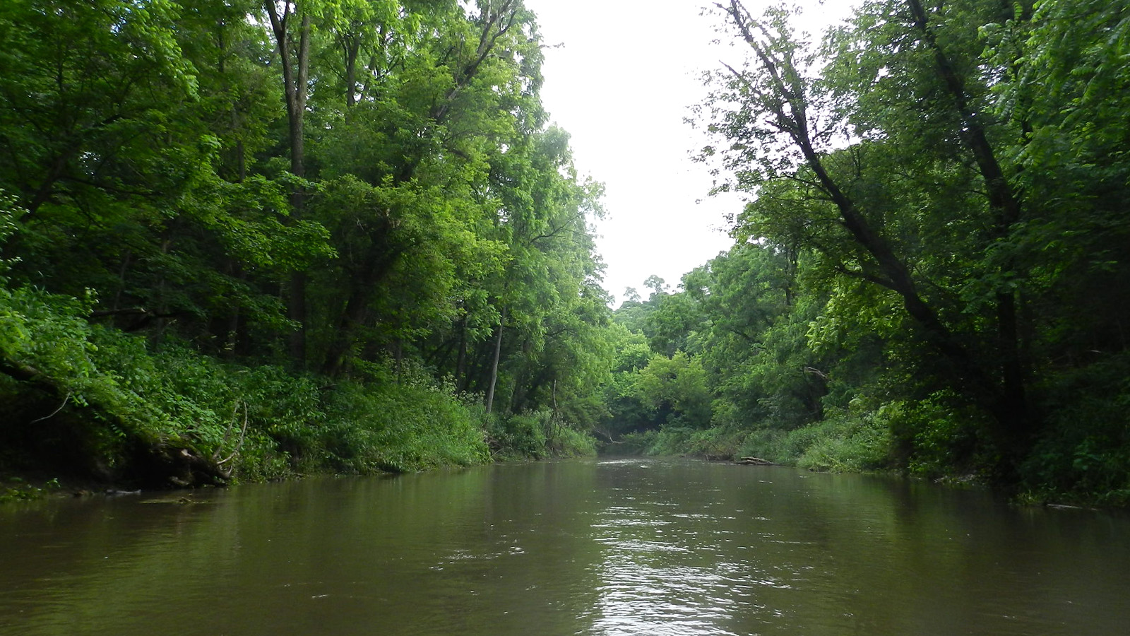 Carroll Creek also goes by the name of “Waukarusa Creek,” at least by locals but I’d give it another moniker: Goldilocks. We tried to paddle this back in April and it was woefully and undeniably low (too low to even pretend it might still be OK and work out). That’s a bitter pill to swallow after driving two hours to only paddle six miles! I returned because after a week of heavy rains and storms (and tornadoes), I knew that just about every tributary of the Mississippi River was running very high and/or flooding, whether in Wisconsin, Minnesota, Iowa, or Illinois. I’d had other plans for the weekend but high water nixed them too. Instead, I thought that this just might be the right time to give old Carroll Creek another try.