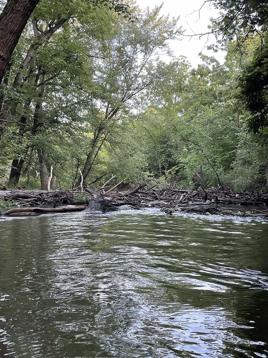 Muddy bottom, log jams, poison ivy — sometimes dealing with all three at the same time!