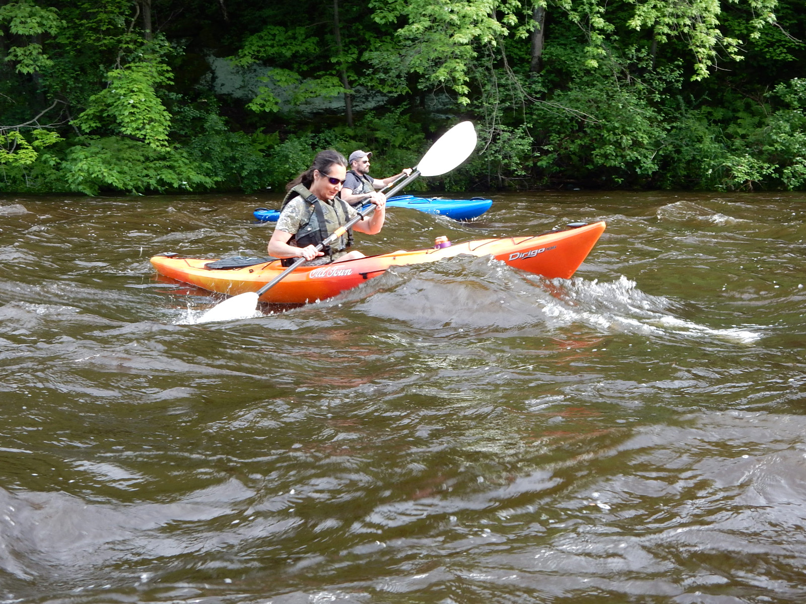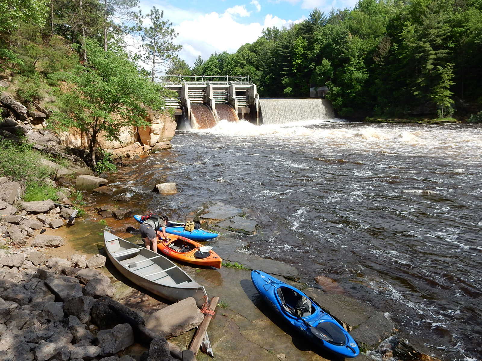 Launching from this spot, below the dam, can be a bit tricky too as the discharge from the dam produces a pretty furious froth of Class II-III rapids, creating constant little waves crashing on the shore. Prepare to be a little wet. Seriously though, you’re probably going to get wet on this trip anyway, eventually. Just be careful that you don’t get bounced into rocks (tragically, the rapids below the dam have taken at least one paddler’s life, so do be careful here).