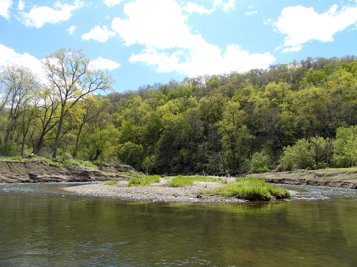 The land along the river at Chaffie Hollow Road is fairly vast, and there really is no designated, specific area to put in at. Basically, launch a boat wherever it makes sense on the upstream side of the bridge on river-left. (That said, see “Didn’t Like” below.) Gorgeous clear water and riffles to keep you giggling await you right away. So too do wooded bluffs, small islands to braid the river into side channels, and handfuls of attractive rock outcrops. It’s a very auspicious way to begin a long trip.