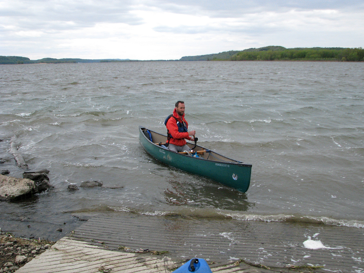 On your left is a quaint undeveloped bay where, dollars to donuts we’re willing to bet you’ll see a flock of pelicans. Around that point and jutting southward, towards Iowa, is a spit of land called Potosi Point Recreation Area. There’s a modest fee ($3) to leave a vehicle. It’s probably for motor boats and the like, but who knows? We don’t like being ripped off, but we no less don’t want to come off as cheapskates or freeloaders. Besides, five bucks is a bargain to ride the Mississippi. We landed our boats on the north-facing side of the spit, near where we left a vehicle.