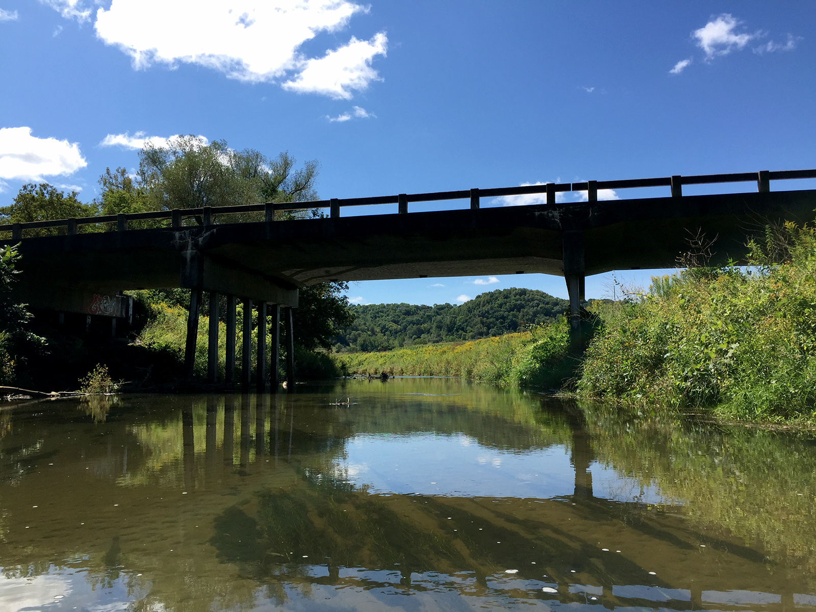 There are two put-in options for this section. The first, a dedicated fishing access with parking. I scouted it but the brush was already high this time of year and County S wasn’t too far away – about 1/4 mile (or so) further up the road, so I headed upstream (plus, I’m kind of a bridge guy anyway). In hindsight, County S and the fishing access are essentially the same; weedy, probably tick-laden and both with solid odds that they each contain a fair share of rash-giving plants just waiting for some foolish kayaker to brush up against them.