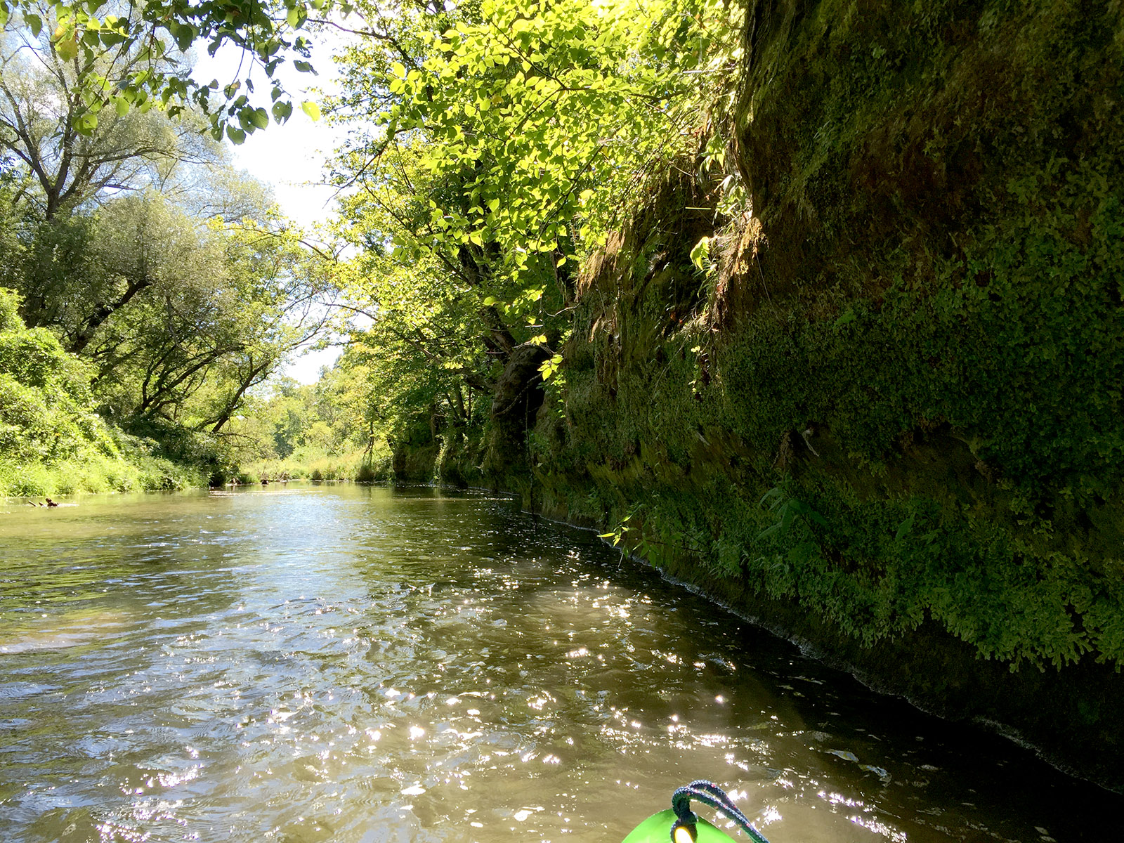 But the highlights of this paddle are what you would (or personally, I had) hope to find with “Kickapoo” in the name – fern and moss covered sandstone bluffs. The shapes felt similar but the magnitude of them are definitely on the miniature side, rising only about 10-12’. But there are five walls that line the paddle and break up the riffles and mini-islands throughout (I say that like it’s a bad thing).