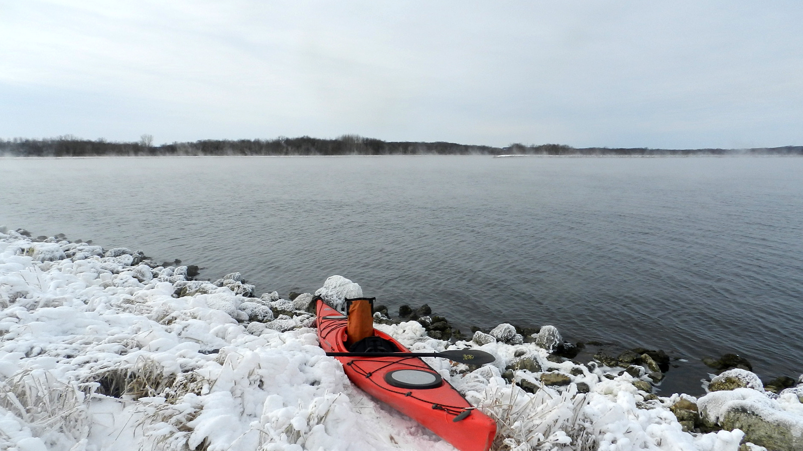The feeling of paddling through huffs of fog is mostly mental/spiritual (if that’s not too grandiose), not so much physical. Maybe your eyes will tear up a little but the fog doesn’t provide a whole lot of warmth. You want to be smartly dressed, especially if you paddle this on a windy day when the lake gets wavy (which by the way, I definitely don’t recommend whatsoever) and thus your potential for capsizing greater (It’s winter in Wisconsin, the cold ain’t going anywhere anytime soon, so why not wait to do this trip when it’s not windy?).
