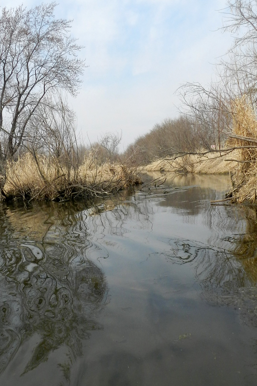 For me, this trip had more bad than good. None of it was awful by any stretch. But the payoff was wanting. I paddled 1/3 of the way upstream into the marsh before deciding that I’d had enough. It got to a point where fallen trees were as far the eye could see and since I would be going back down the same way I came up, every portage was double. After four I’d had my fill. Besides, I didn’t know what to expect once I paddled back downstream and past the put-in. For all I knew, there could be more crap to contend with beyond the marsh. Turns out there is, but it was all negotiable – in a kayak at least (earlier in the day I talked to a guy who’d tried canoeing from the takeout upstream the river but could not get through the railroad trestles (there are two), where there’s a bunch of gunky junk – a loose debris of logs and lumber, pond scum, duck weed, no current, etc.) Houses are more prominent below the put-in too. In fact, except for a brief but attractive hill you pass, there’s very little one would describe as attractive in between County Road TT and Canal Road.