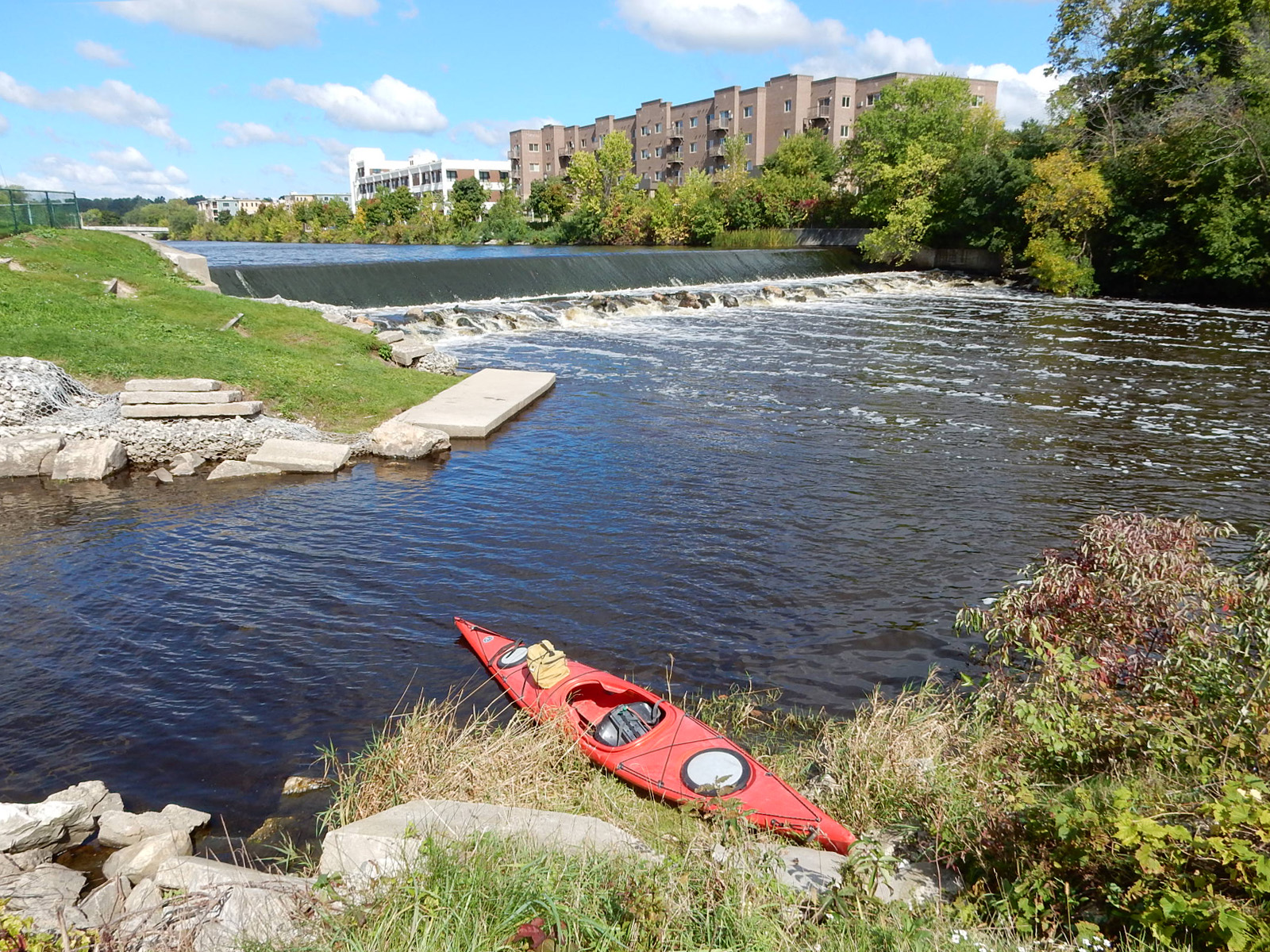 April 10, 2024 at 6:51 amThe City of West Bend completed a River Bank improvement project. The dam is no longer a good put in, but they did put in a cement kayak ramp about a 1/4 mile down river. The address is 275 Service Dr., there is also plenty of parking available.