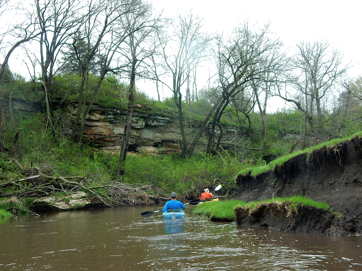 An intimate stream hidden in plain sight buffeted by bluffs, rolling hills, and exquisite rock outcrops, with many riffles and diverse wildlife, this obscure branch of the Pecatonica River system offers a lot of remarkable charm. Alas, catching it with enough water will be tricky, and the second half of this trip is all but booby-trapped with umpteen obstructions – up to and including paddling past a shooting range.