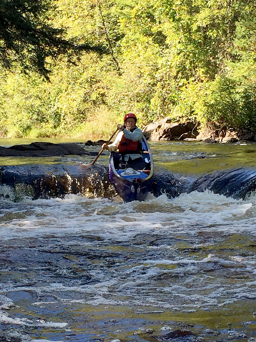 Bathed and raised in the northwoods, each of these three streams begins languidly in lugubrious bogs and boreal swamps, interrupted occasionally by beaver dams. Then they fall “head over keels” for Class II boulder gardens and over Class III-IV waterfalls past rock outcrops so ancient as to make one’s brain ache. The Popple enters the Pine, and the Pine and Pike both flow into the Menominee River, which flows into Lake Michigan, which flows into Lake Huron, which flows into Lake Eerie, which plummets down Niagara Falls into Lake Ontario, which drains out the St. Lawrence River down which one cries bon jour to Montreal and au revoir to Quebec, en route to its own paddle-to-the-sea destiny: the Atlantic Ocean.
