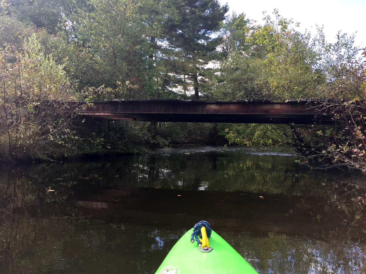 Then comes the one big (potentially) nuisance on this entire trip, a VERY low-clearance bridge located at a private driveway at a (what I believe is a ginseng) farm. It’s ridiculous and dangerous. At these levels (low) I was able to get beneath but if there’s any doubt, it can be portaged on river-left. The issue is that it’s constructed with inverted bars on the underside that meet in the middle – making the middle the lowest point – thereby forcing an awkward and unsafe approach towards either side, were the current is the strongest. It’s crappy that this exists.