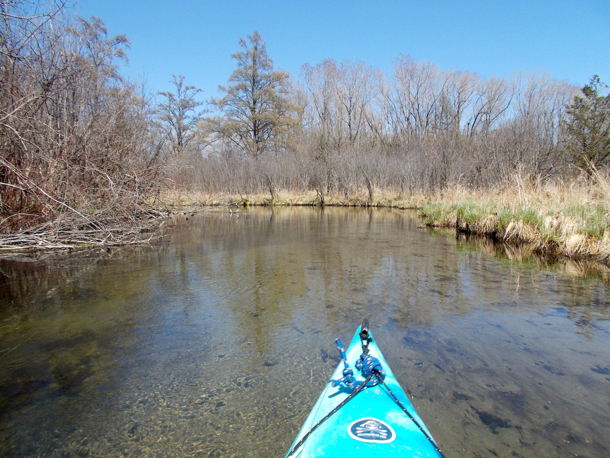 I’d be remiss to point out the awesome shuttle this trip presents. Because the creek flows west, south, west, and northwest, the shuttle is pretty much a straight shot east, by bike or car, at a distance that’s less than half the miles of the paddling itself. That comes as a relief after a longish day of paddling the narrow meanders of the creek.