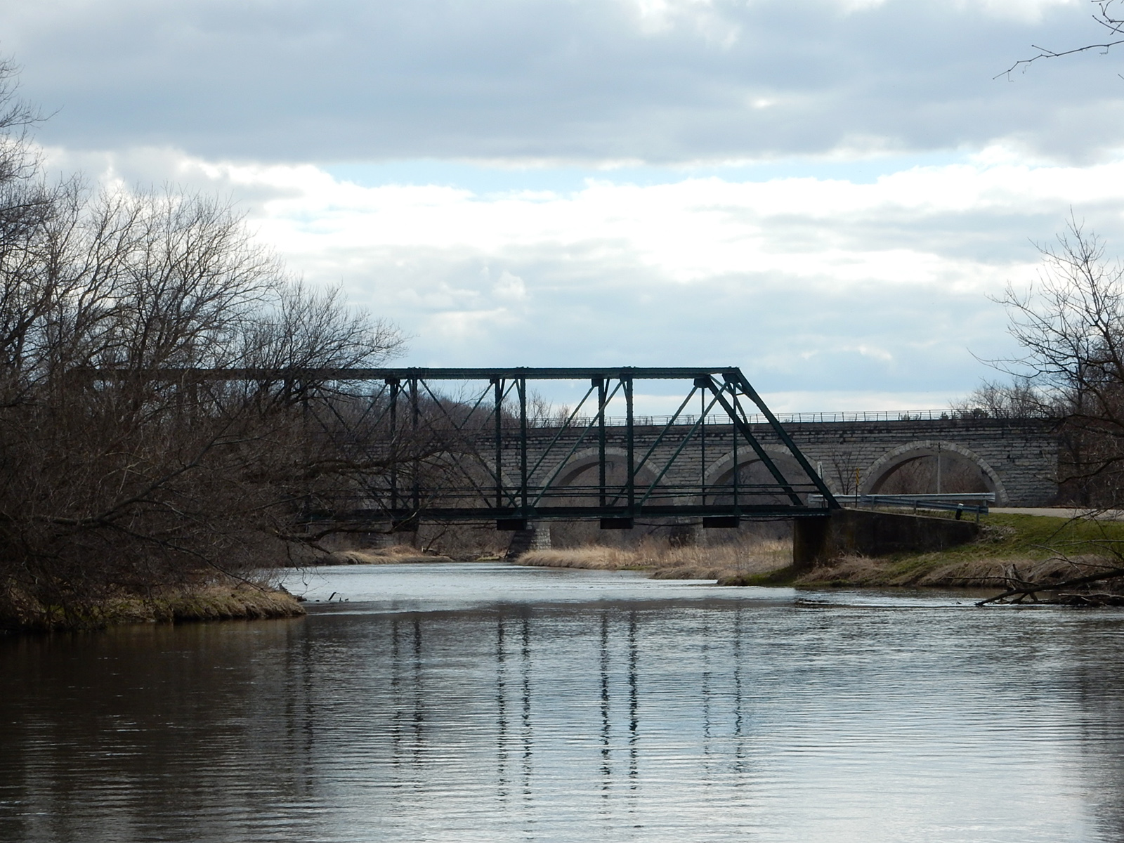 As you approach the rustic truss bridge at Smith Road, the paddling is just fabulous. That attractive bridge is soon overshadowed 75 yards later by the majestic limestone arch bridge in Tiffany (which to be fair looks prettier in summer, garlanded with greenery). From there the gradient drops again, after being a bit flat for a few miles, all the way to the takeout, which comes too soon. If it weren’t so convenient, you’d want to ride with riffles past Sweet Allyn park to somewhere else downstream. But one needs to stop paddling at some point and there’s hardly anywhere better than this park.